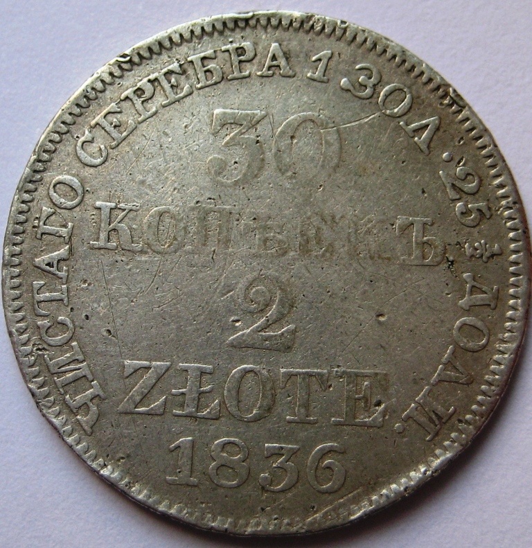 30 копеек/2 злотых, 1836, MW, Русская Польша