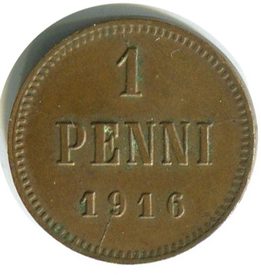1 пенни, 1892, Русская Финляндия, Александр III, нечастая