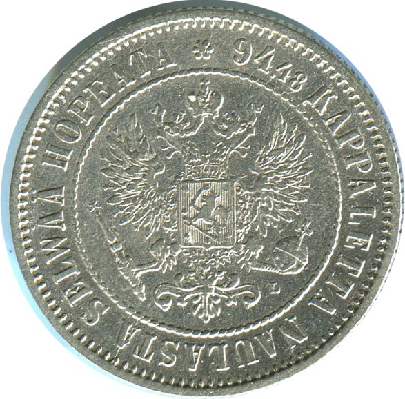 1 марка, 1874, S, Великое княжество Финляндское, нечастая