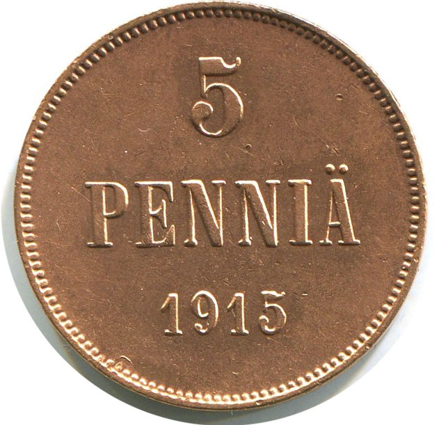 5 пенни, Русская Финляндия, 1915, KM# 15