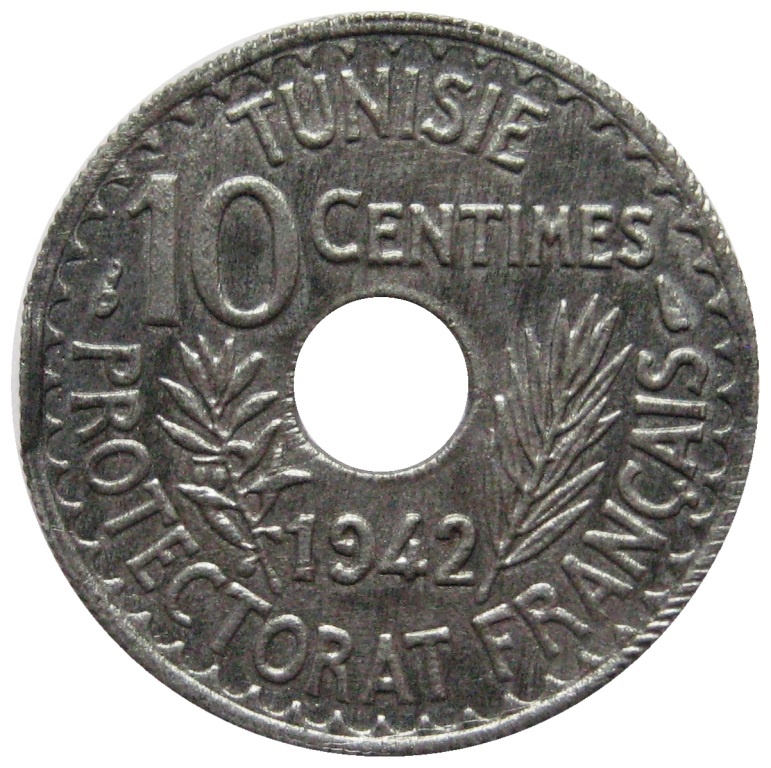Французский Тунис, 10 сантимов, 1942, KM# 267 |