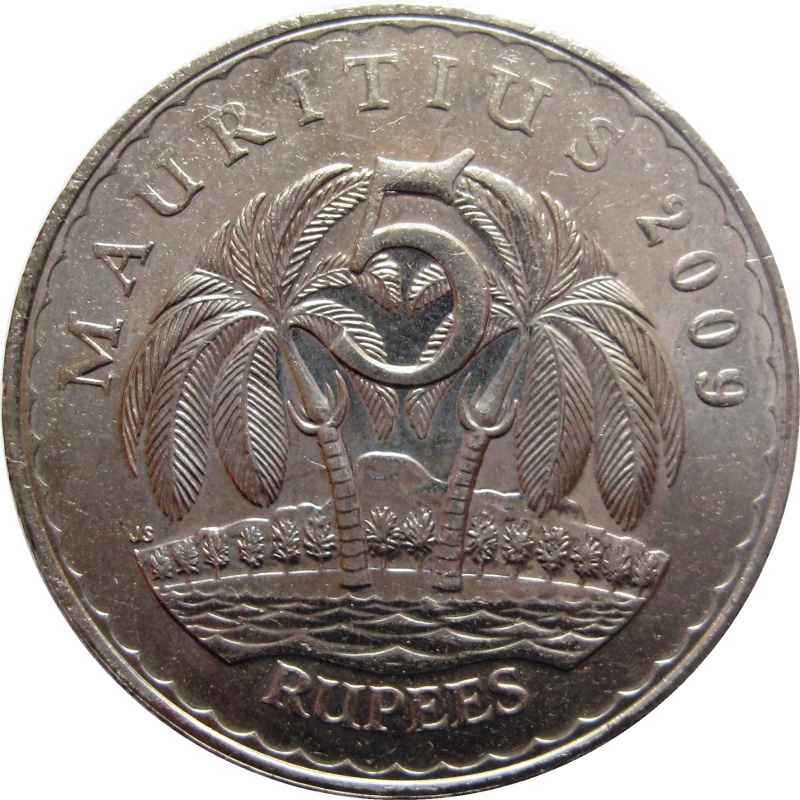 Маврикий, 5 рупий, 2009, диаметр 30 мм |