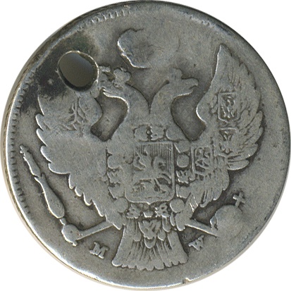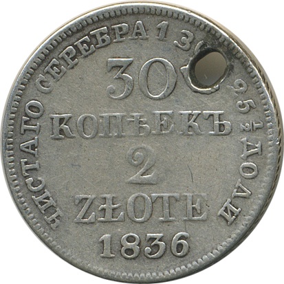 30 копеек/2 злотых, 1836, отверстие!