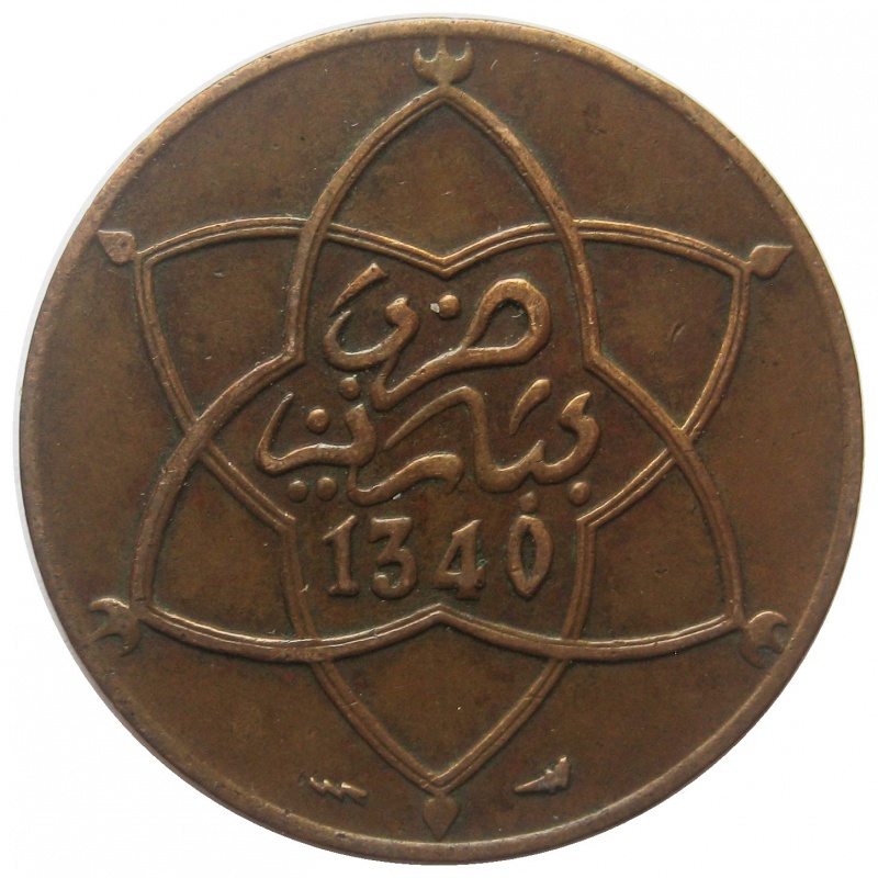 Французское Марокко, 5 мазуна, 1340 (1921), монетный двор Пуасси |