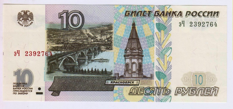 10 рублей, 1997(2004), золотистая надпечатка "Кронштадт", коллекционная