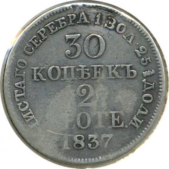 30 копеек/2 злотых, 1837, МW