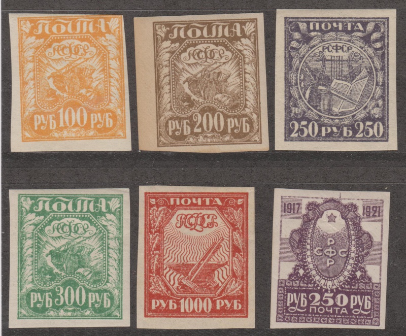 Марки царские без зубцов, 6 шт