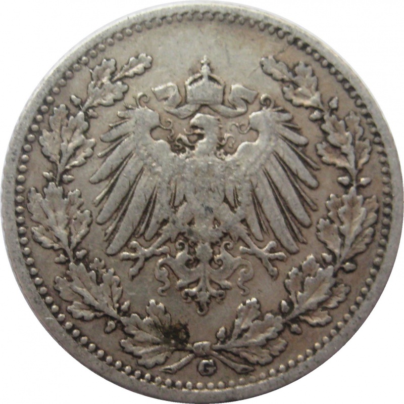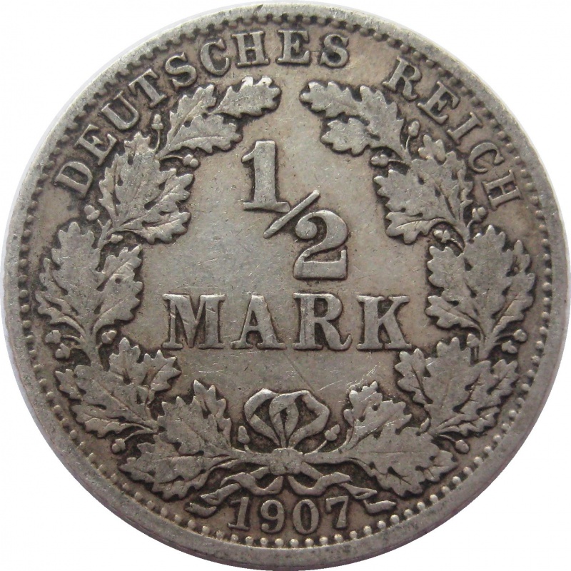Германия, 1/2 марка, 1907, G (Карлсруэ) редкая |