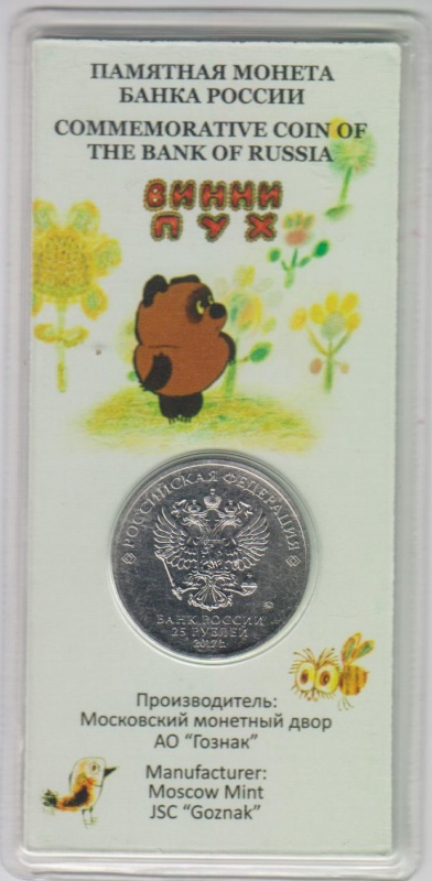 25 рублей, 2017, Винни Пух, цветная |