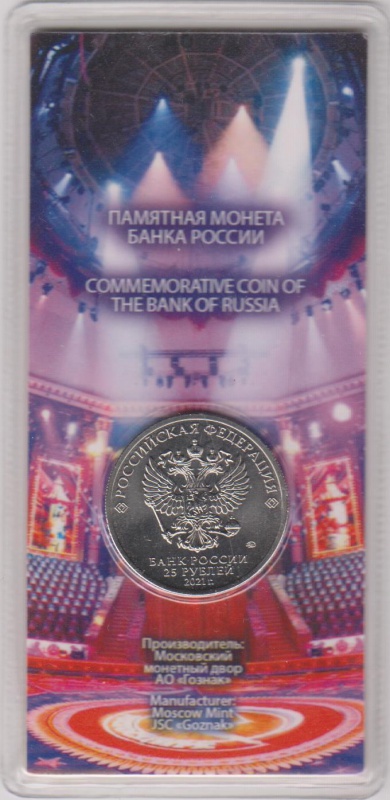 25 рублей, 2021, Юрий Никулин 100 лет со Дня Рождения, цветная