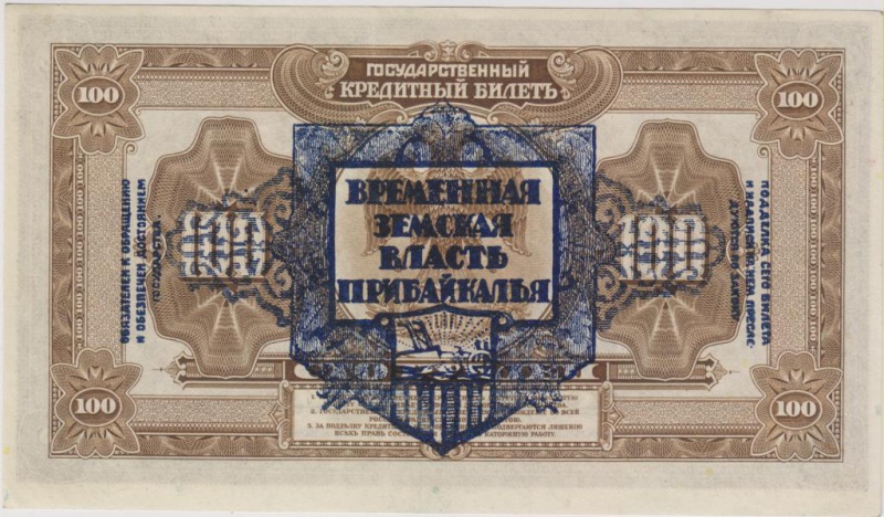 надпечатка ВРЕМЕННАЯ ЗЕМСКАЯ ВЛАСТЬ ПРИБАЙКАЛЬЯ