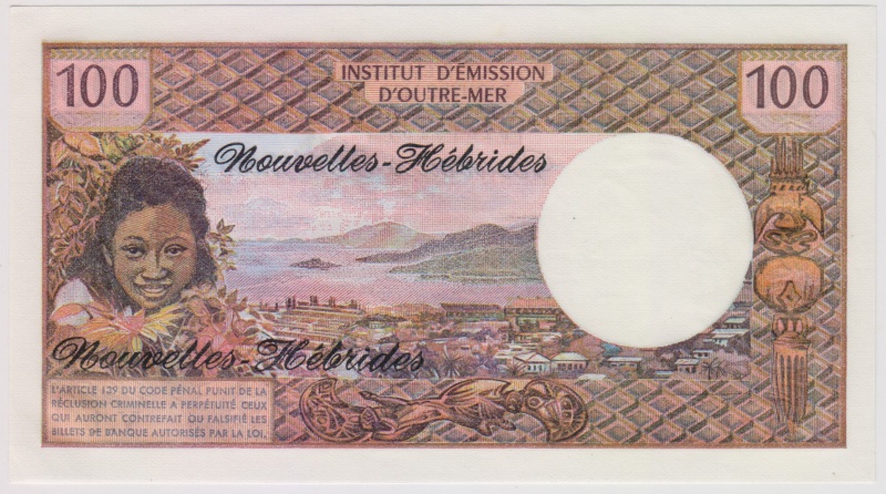 Новые Гебриды, 100 франков, 1970-77 гг, оригинал